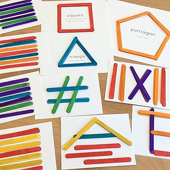 Children use the sticks to replicate the shapes and structures shown on the cards.