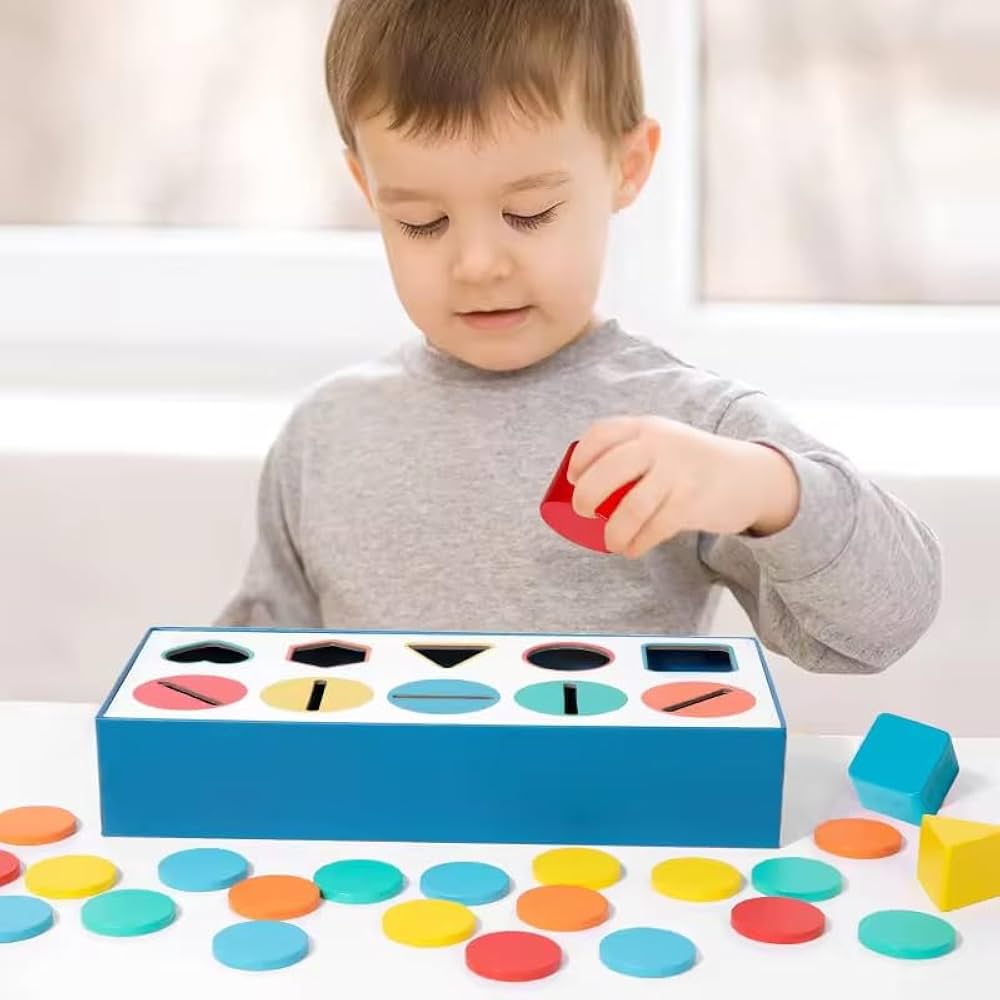 Make learning fun with the Color & Shape Classification Box – a wooden educational toy designed to build essential early skills! Kids can sort vibrant blocks by color and shape, enhancing their ability to classify and organize. This activity boosts hand-eye coordination, spatial awareness, and problem-solving skills while keeping little minds engaged. Crafted from child-safe, durable wood, it's perfect for toddlers to explore independently or with guidance. Great for Montessori-style learning and screen-free play. Watch your child’s confidence grow as they master sorting and matching in the most playful way! 🧠🟡🔺 Material : High-quality Non-toxic wooden materials Genre : Educational Colour: Multicolour Dimensions: 23*11*4.5cm Weight: 0.7kg Recommended age: 2+ Skills developed: fine motor skills, open ended play, problem solving skills Condition: New