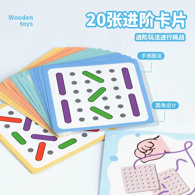 The 36 challenge cards feature different lacing patterns for kids to match, encouraging them to follow instructions, improve focus, and learn visual-spatial relationships.